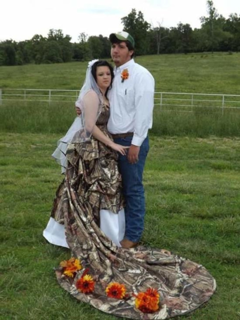 Wedding attire often reflects a couple’s cultural or religious traditions, adding deeper meaning to their special day. However, for one bride, her wedding dress was inspired by a shared passion with her groom: their love of hunting. Breaking away from tradition, she chose a bold and unconventional camouflage wedding dress, a decision that perfectly captured their unique connection and shared interests.