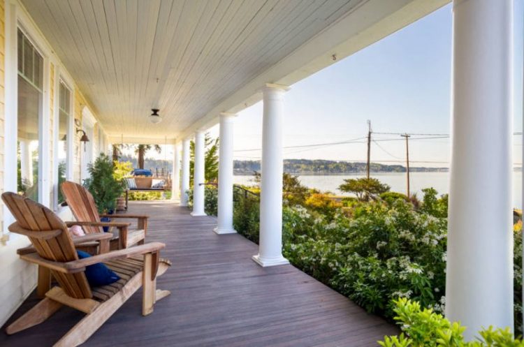 Terraces are often decorated in a beach or coastal style.