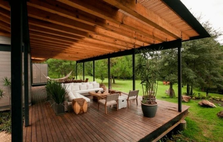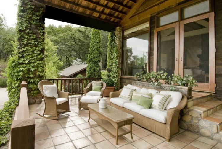 Terraces can be open, closed, as well as adjacent to the house. This photo shows a classic example of a covered terrace with a place for lunch.