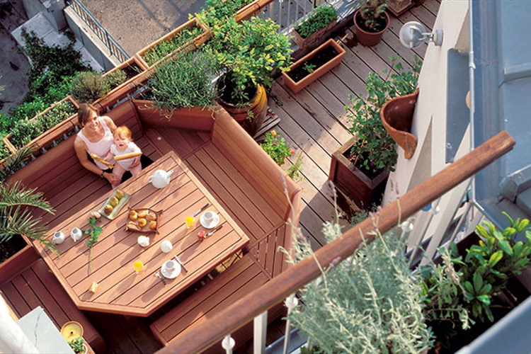 On such terraces they often put a dining table or a barbecue.