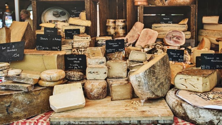About 1,000 different types of cheese are produced in France.