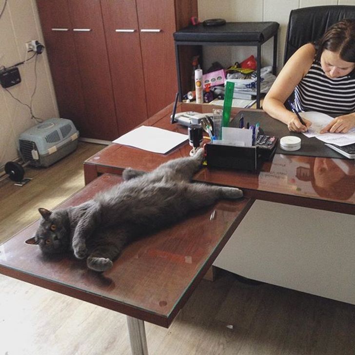 All boring office work becomes better with a cat.