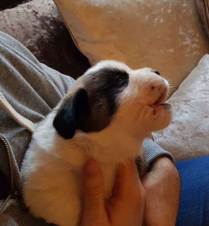 A 3-week-old Saint Bernard trying to do his first howl.
