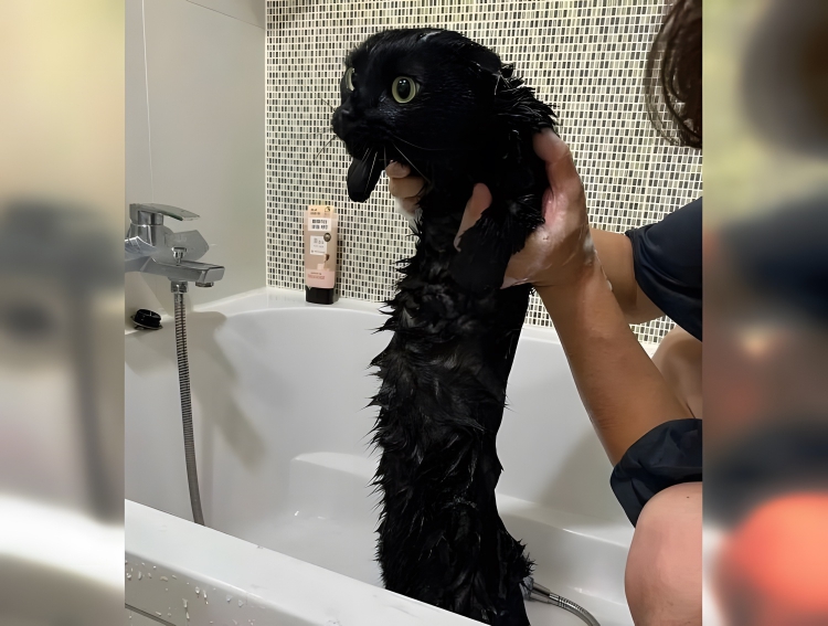 The cat transformed into a big worm.