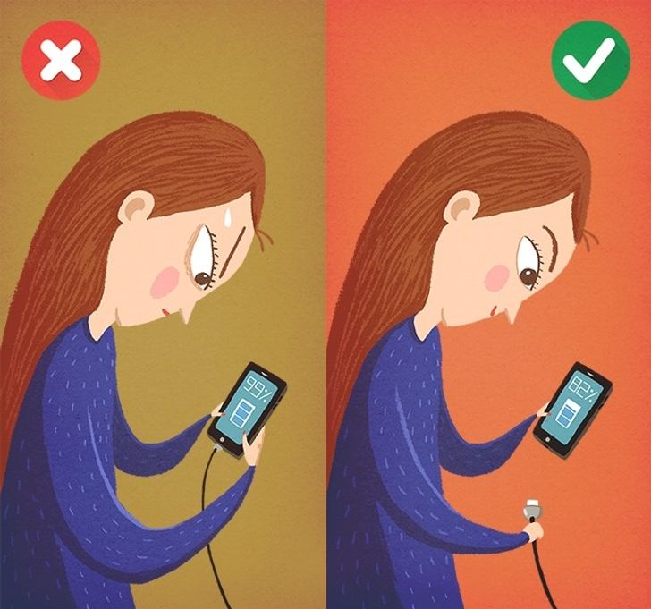 Es scheint ziemlich klar zu sein, finden Sie nicht? Aber denken Sie einmal darüber nach, wie oft Sie ein gerade aufgeladenes Telefon in die Hand genommen haben und dann festgestellt haben, dass es bereits seit einiger Zeit vollständig aufgeladen war. Die Batterie wird unter dieser Überspannung stark leiden.