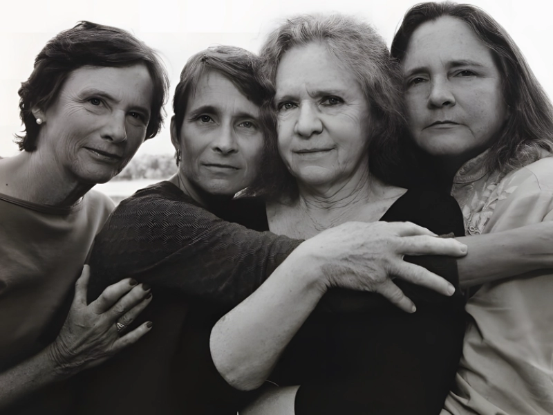 Photographer Nicholas Nixon remarked, “There are four persons I would want to thank: the Brown sisters themselves. Originally accepted me into their life, then let me attempt making one image, then joined me in a tradition, an annual rite of passage, driven by my curiosity about and appreciation of these gang of beautiful, strong women. I owe my sisters-in-law Mimi, Laurie, and Heather great thanks for their love and patience. My existence revolves around Bebe, my real love, my friend. How lucky and how appreciative I am.