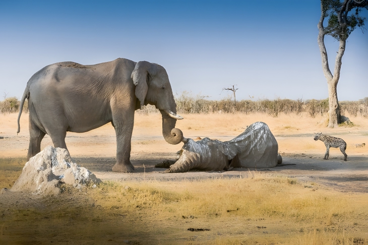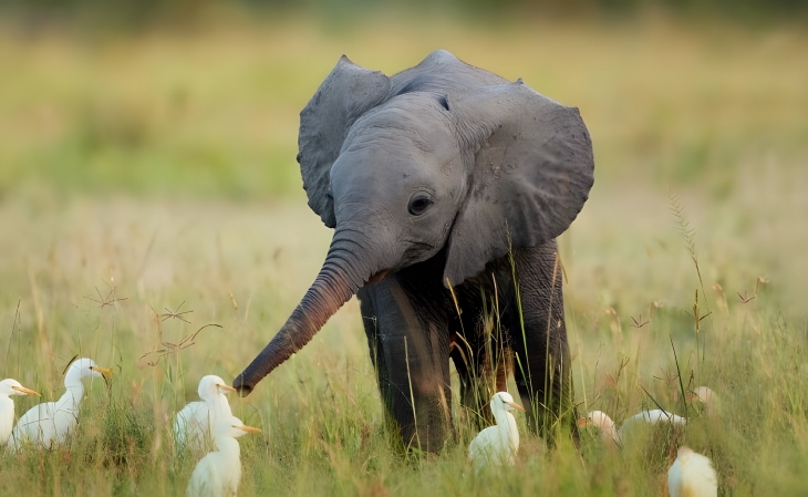 Photo 1. The first acquaintance with the outside world and immediately shock: the elephant discovered that these animals have no trunks …