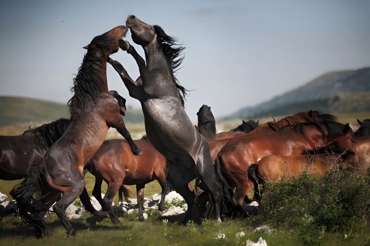 Photo 17. Stallions are deciding who is going to lead the herd.