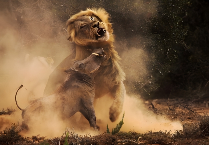 Photo 4. Unequal battle. And it’s not the fact that the lion is stronger …