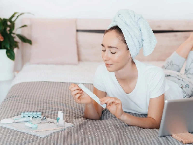 A professional result in just five minutes depends on having the correct equipment available and orderly before jumping into nail art creations. Start with a spotless workstation and compile base coat, top coat, colour of choice nail polish, dotting tools, thin brushes, nail tape, and cleanup brushes. For time savings, invest in quick-dry drops or spray. Good lighting is crucial; so, either use an LED bulb or sit close to a natural light source. Clean, shape, then apply cuticle oil to prepare your nails. Having everything within arm’s reach helps keep attention during the application process and reduces needless movement. To collect any spills or drips, have paper towels or a silicone mat covering your work surface. For simple selection, arrange your polishes in a colour family; have a small dish of acetone close for rapid brush cleaning between colours. To stop spills and ease application, think about using a nail polish holder or stand. Effective workstation setup can help you maximise your five-minute window for exquisite nail art creation by simplifying your approach.