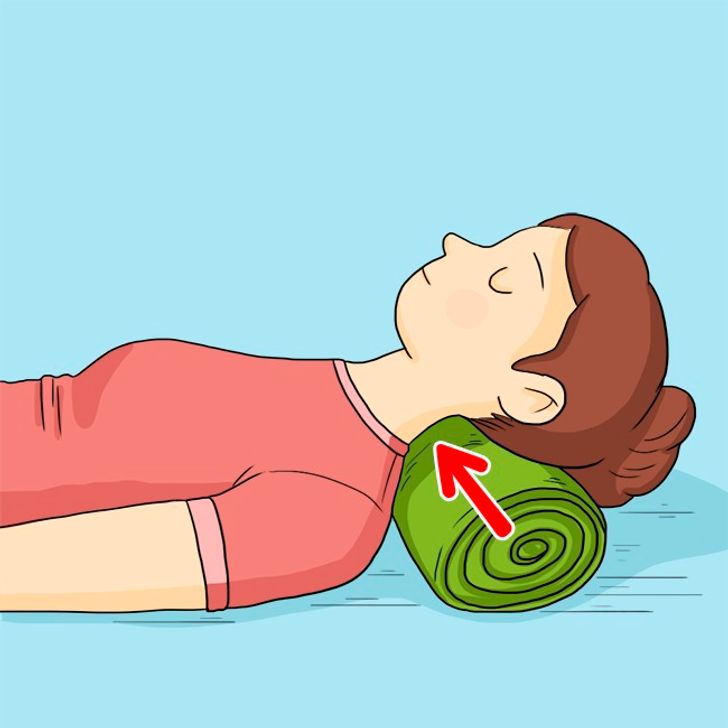 Your head should also rest comfortably. It’s best to sleep on an orthopedic pillow, but if you don’t have one, roll up an ordinary towel.