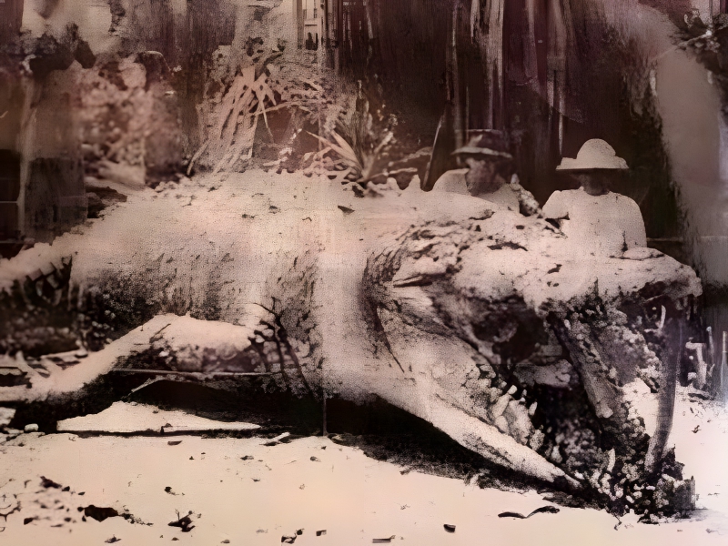 The sole image that is now available of the enormous 28-foot crocodile that perished in Queensland, Australia, in 1957.