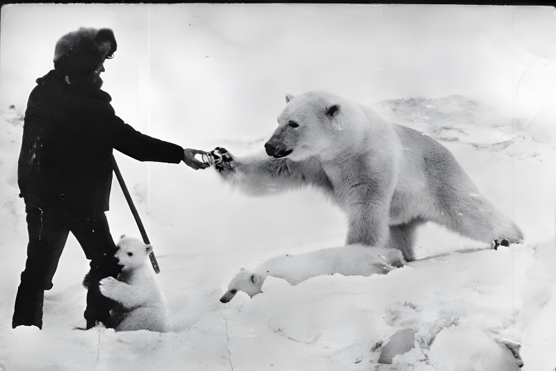 Hand-feeding a polar bear requires courage, but these Soviet soldiers did just that. The Chukchi Peninsula in the Soviet Union is where this photo was taken. It can get as cold as 25 degrees below zero in this hostile environment, and the snow can get so deep that it can be difficult for animals to find food. The soldiers saved the starving mother polar bear and her children by feeding them condensed milk in tin cans, which they had enough of. The mother bear gave her cubs some milk after licking the can. This arctic bear must have become mellow from near starvation. One of the world’s most violent animals is a mother polar bear defending her offspring.