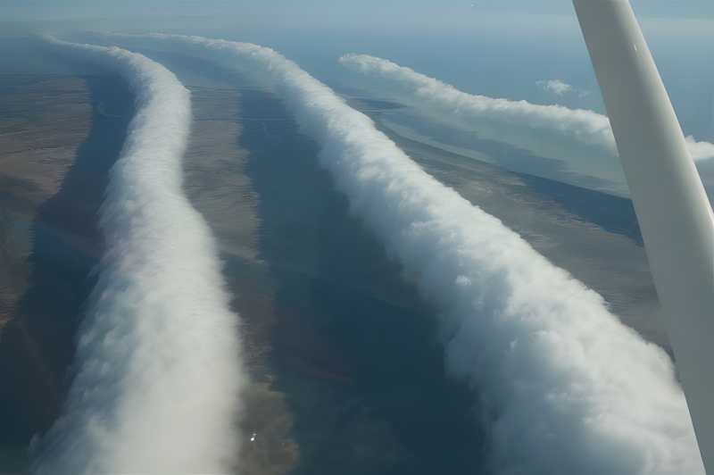 Although they appear false, morning glory clouds are a genuine and uncommon weather phenomena that can only be somewhat predicted to occur in Northern Australia’s southern Gulf of Carpentaria. Low-level atmospheric waves that grow into a sequence of waves or rolls are what give rise to morning glory clouds. Visitors to Burketown, where this picture was taken, can frequently view these unusual morning glory clouds from late September to early November. The sight of these unusual cloud formations really draws tourists, meteorologists, nature photographers, and glider pilots to the area.