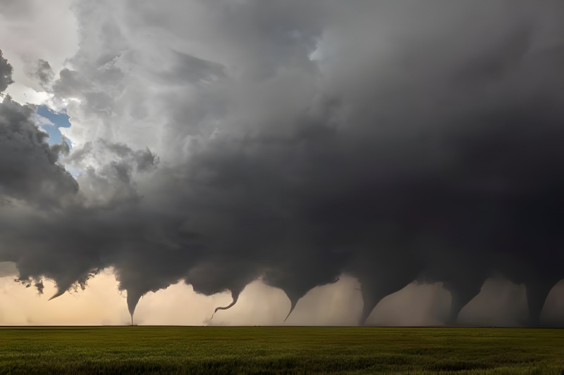 This picture shows the development of a little funnel cloud into a powerful tornado. Starting as a little tendril, the spinning cloud evolves into a catastrophic twister. Although it appears dangerous, the ensuing twister is not as big and lethal as it may be. Based on the damage that a tornado can cause to buildings and trees, the Fujita Scale’s F-Scale is used to rate the severity of tornadoes. Tornadoes are classified into five categories, ranging from F-1 to F-5, and the classification is decided by meteorologists based on aerial or ground observations of the damage.