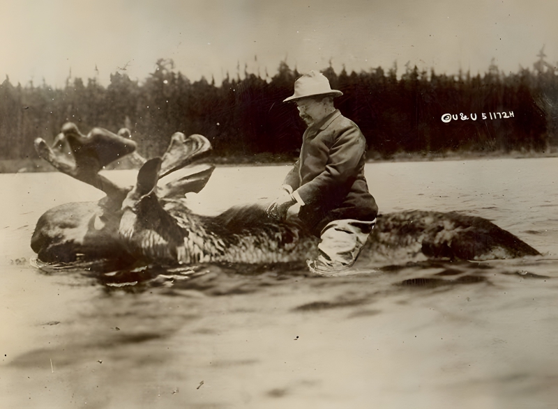 In 1908, President Theodore Roosevelt crossed a river atop a moose.