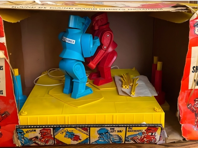 The Blue Bomber and the Red Rocker were the two combat toys in this 1964 two-player toy game. By switching between these characters’ controls, players would attempt to remove their opponent’s head.
