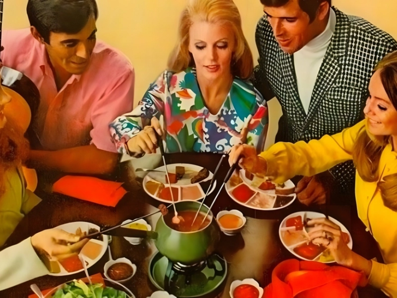Fondue was the hip yet casual meal that the ’60s were looking for. It was much simpler to host a fondue party when nine different firms began to sell ready-made fondue in cans or packets by the 1960s.