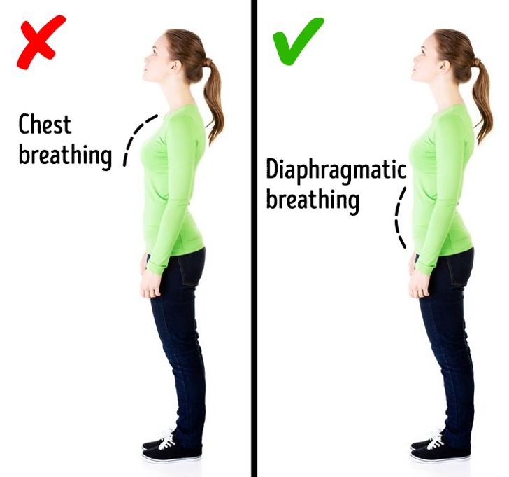Watch a baby breathe if you want to understand how we should breathe: they breathe with their stomach and diaphragm. This type of breathing helps enrich our body with oxygen and increases our energy level.