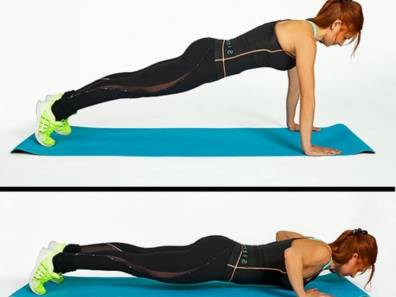 How to do it: Start off with your arms straight in a plank position. Drop down as far as you can from there. Make sure your pelvis, back, and legs are all in a straight line. then revert gradually to your starting position.The chest, arms, and abdominal muscles are impacted.