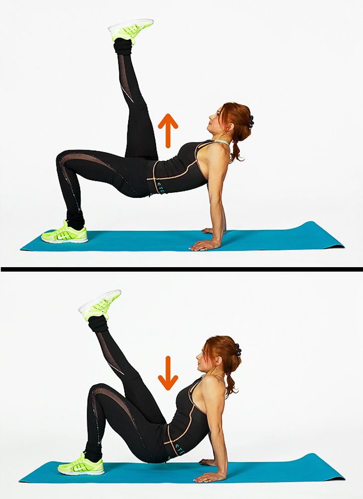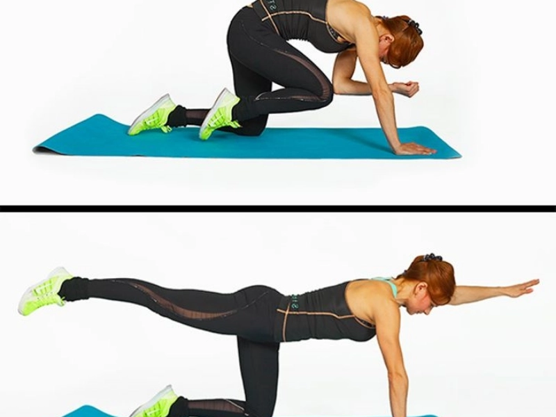 How to do it: Stand on all fours, and stretch your left leg and right arm in a straight line. Then slowly bend them, and touch your right elbow to your left knee. Straighten up again, then change the arm and leg.Results: Good for the torso and hip-bending muscles. It also strengthens most of the back muscles, the buttocks, and the waist.