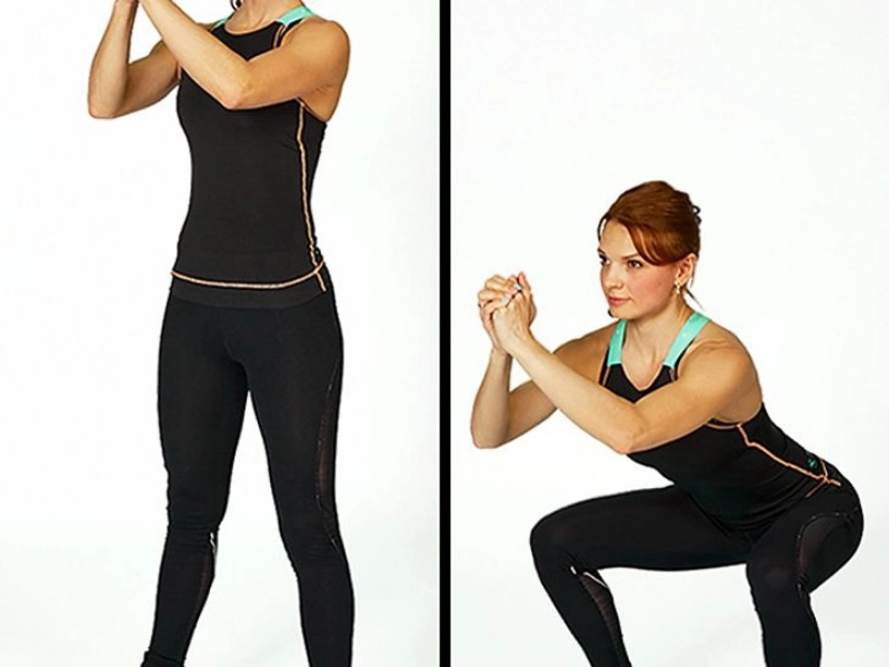 What to do: Standing on your entire foot, space your feet out to shoulder width. Sit as though you are in a chair by aligning your feet and knees and maintaining a straight back. Raising your arms in front of you will help you stay upright. When you can, slowly stand back up.Strengthens the thighs, ankles, and buttock muscles.