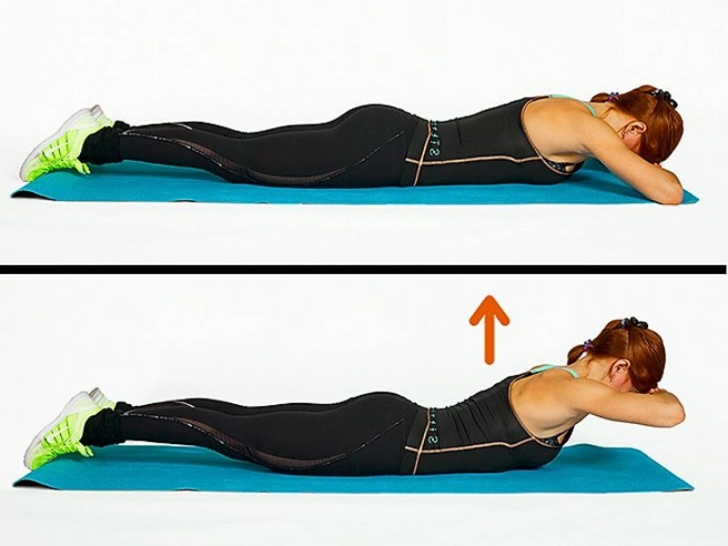 How to: Lie facedown on the ground with your arms bent at the elbows and placed directly beneath your head. As high as you can, lift your upper body. Spend a few moments in this position before slowly shifting back to your starting position.Results: The spinal muscles are strengthened and toned.