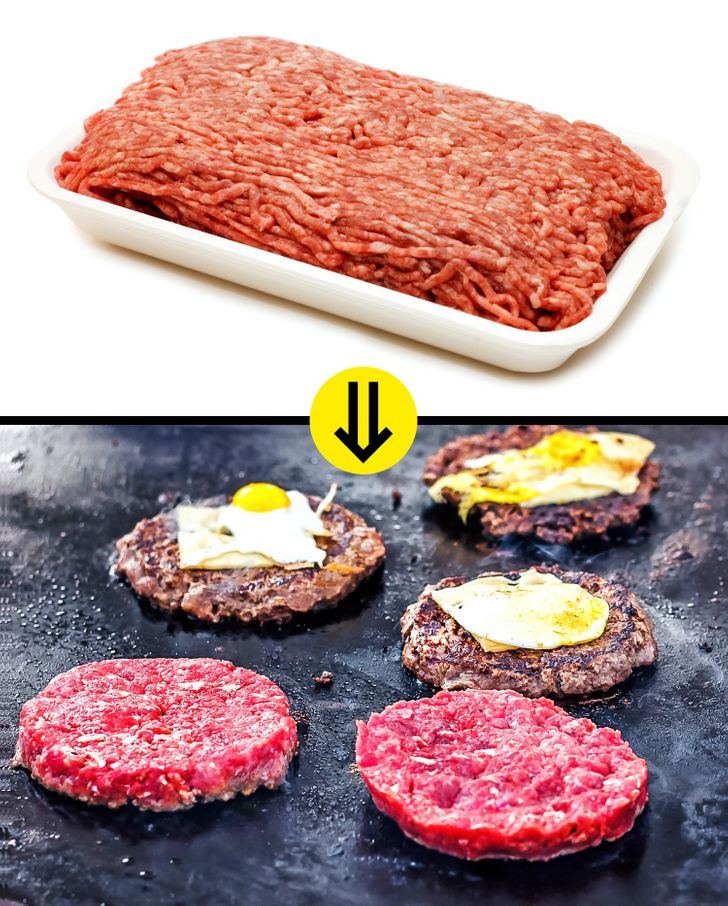 Experts have found the remains of antimicrobial drugs, E. coli, salmonella, and listeria in ground meat. That’s why it’s better to make thin, flat pieces of meat and fry them.