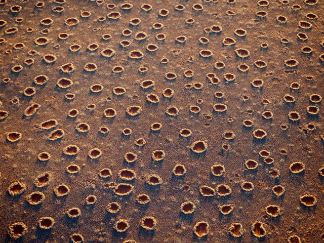 Fairy Circles are circular patches of barren earth surrounded by a ring of tall grasses found in the Namib Desert in southern Africa. These circles are typically between 6 and 30 feet in diameter and are evenly spaced, sometimes covering hundreds of acres.