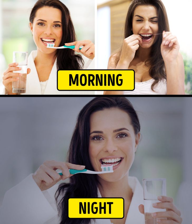 Brush your teeth for 2 minutes, twice a day, and floss at least once. A study showed that only a little over 55% of women brushed twice a day and the percentage of men doing so is even lower at just 49%. Brushing and flossing help remove trapped food and odor-causing bacteria from the mouth.