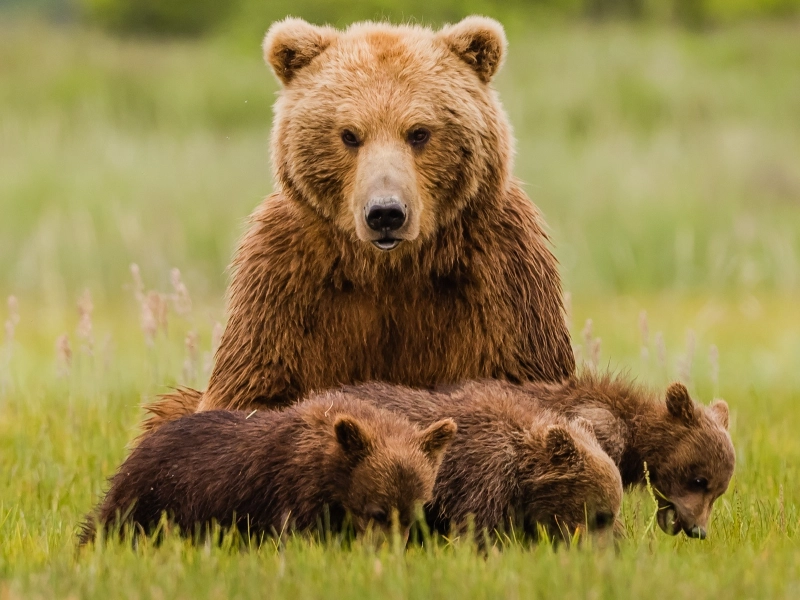 7. Grizzly Cubs Stay With Their Mom