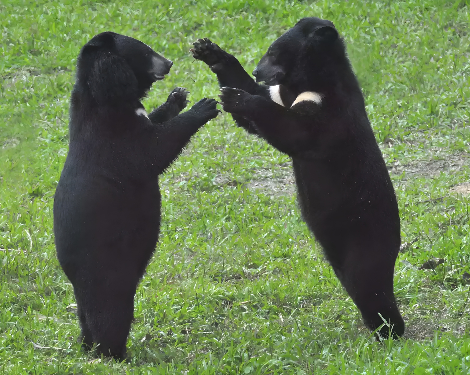 The medium-sized, dark-colored Asiatic black bear (Ursus thibetanus) is known for its white v-shaped patch on its chest and large ears (larger than the American black bear).5 Found in forested areas throughout southern Asia, especially India, Nepal, and Bhutan, they’ve also been reported in parts of Russia, Taiwan, and Japan. They love high altitude habitats, sometimes as high as 9,900 feet, but are known to descend to lower elevations in the wintertime.