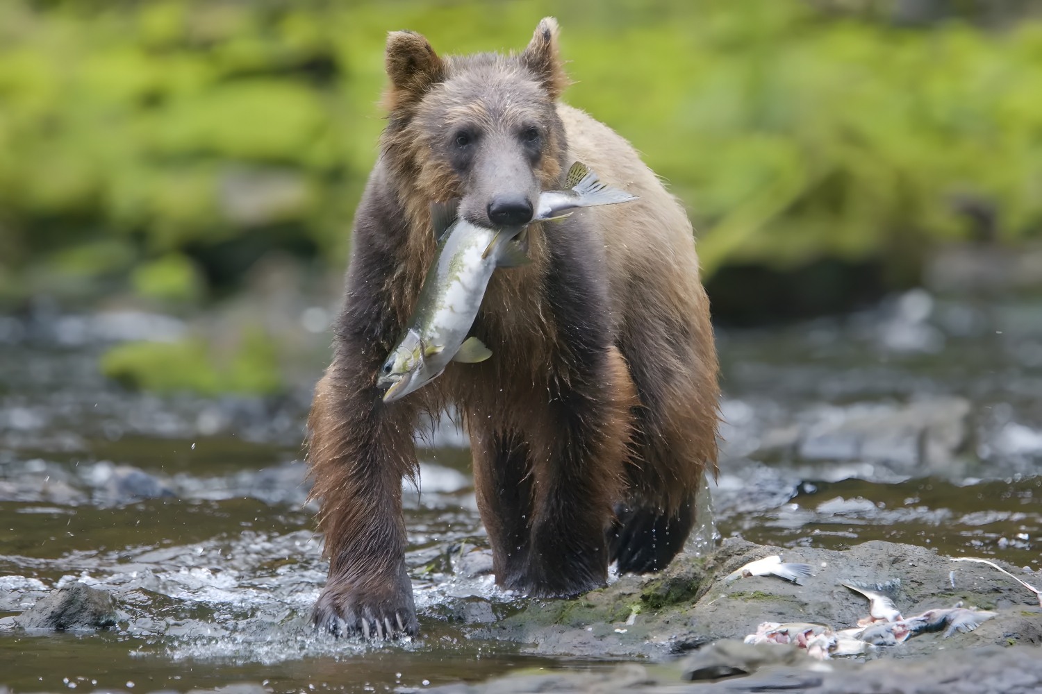 Brown bears are omnivores and will eat practically anything as long as it’s nutritious, generally foraging in the mornings, since they aren’t the best climbers. They’ve been known to travel long distances for food, especially in search of salmon streams or areas with high berry production. This is typically the only time brown bears are seen in groups, as they’re typically solitary animals.
