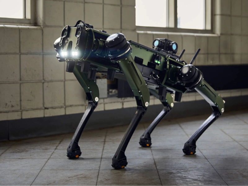 Featuring an integrated weapons suite including both lethal and non-lethal choices, the Unitree A1 Military Edition turns the commercial platform into a potent combat system. Its main armaments are a stabilised 5.56mm weapon system and a deployable drone launcher for aerial targeting and reconnaissance. Ground-penetuating radar for IED detection and sophisticated thermal imaging for target acquisition are among the improved sensors on the platform Its special ability is to operate in swarms, with several units coordinating their activities for best tactical efficacy.