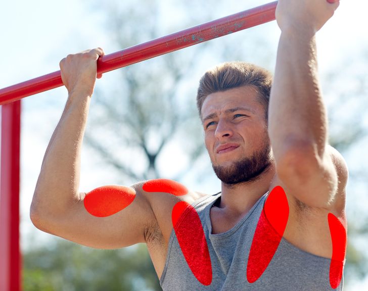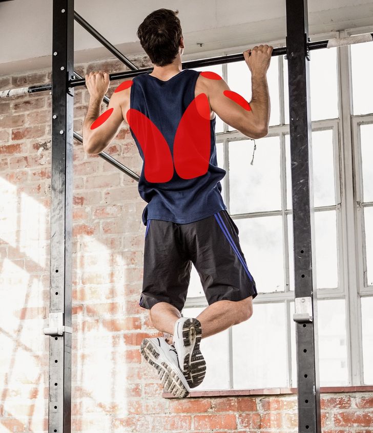 Start with a grip that’s shoulder-width apart with the palms facing inward; Pull yourself up;