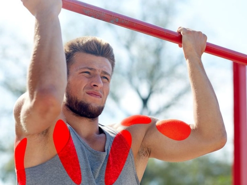 Chin-ups differ slightly from pull-ups in that they focus more on your biceps than your lats. Start in a grasp with your palms facing inward and your shoulders shoulder-width apart. Pull yourself up. Lower yourself to the starting position.