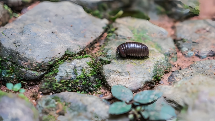 Pill bugs breathe with gills, like their ancestors. While gills are great in the water, they are not ideal on land because they can dry out. To preserve moisture and avoid desiccation, pill bugs are active at night and spend the daylight hours in wet, damp areas under things like logs, mulch, and stones, where they can roll into a ball to protect any moisture they have on their gills.