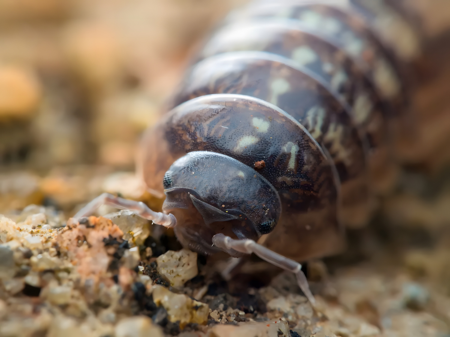 The roly-poly, or pill bug, is a terrestrial crustacean that looks just like an insect. Oval-shaped, with seven sets of legs and a hard outer shell, these creatures are best known for their ability to roll themselves into a perfectly shaped ball when threatened.
