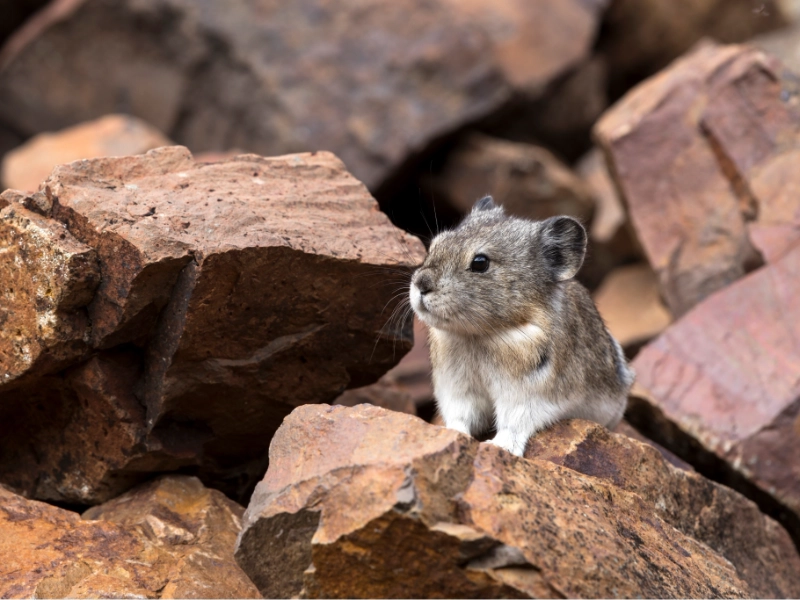 Rocky slopes, talus fields, and boulder-strewn meadows define the high-altitude environments pikas choose. These habitats offer the ideal mix of cover from the elements and food supplies pikas need to flourish. While the nearby alpine meadows provide a range of vegetation for feeding, the cracks between rocks give protection from predators and severe weather. This habitat also lets pikas participate in their unique activity of hay-pile construction, in which they gather and save plants for winter use.