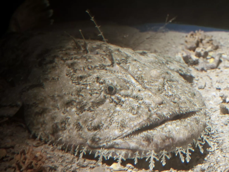 The monkfish’s odd look results from its evolutionary adaption to living on the ocean floor. Where it spends most of its time, its mottled, brownish skin offers great concealment against the sandy or stony seabed. The hunting method of the monkfish depends mostly on ambush predation, hence its concealment is absolutely vital. Key in this approach is the fish’s most unique trait—a modified dorsal spine that stretches from its head like a fishing rod, replete with a meaty lure at the end. Attracting prey near the monkfish’s huge mouth, this biological fishing rod—known as an illicium—is The monkfish’s strong jaws quickly snap shut when an unwassuming fish or crustacean approaches the bait, swallowing the prey entirely.