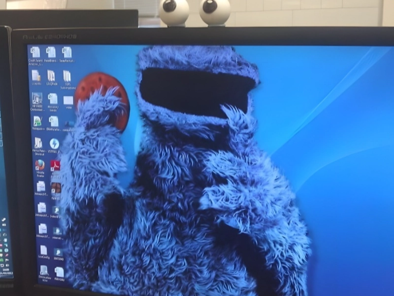 The famous Cookie Monster in this smart desktop wallpaper plays with both digital and physical definitions of “cookies,” in a funny self-referential situation. The graphic depicts the beloved Sesame Street character looking perplexed at his declining cookie collection, therefore creating an ironic situation whereby he is blind to his own cookie-consuming tendency. Working on several levels, the wallpaper incorporates tech humor—that is, browser cookies—along with the well-known psychological aspects of character. Anyone acquainted with Cookie Monster would value the situational comedy added by the execution, which wonderfully nails the character’s expression. This design shows how easy irony combined with pop culture allusions may produce an interesting and unforgettable desktop environment.
