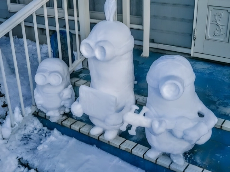 Gru, their infamous boss, is the one lacking from this wonderful winter picture. His absence is clear-cut, which makes us question where he might be. Maybe he’s hiding in the backyard trying to find some quiet from his fervent yellow adherents. Alternatively he might be planning his next evil idea from the solace of his hidden cave. All the same, these Minion snowmen are evidence of both artistic snow carving and the impact of popular culture on outdoor pursuits.