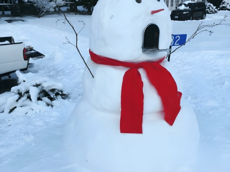 The value of strategic placement in snowman building cannot be emphasised; this artistic woman expertly demonstrated this point while her husband was at work. She showed great originality by include their mailbox into her snow sculpture instead of just creating a classic snowman in their yard. This choice turned a common object into a vital component of her creative vision, so producing a very lovely winter work.