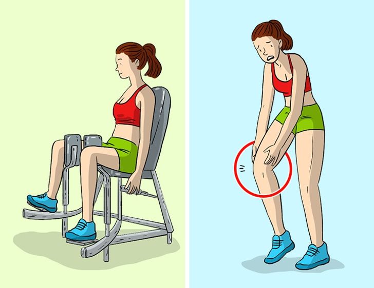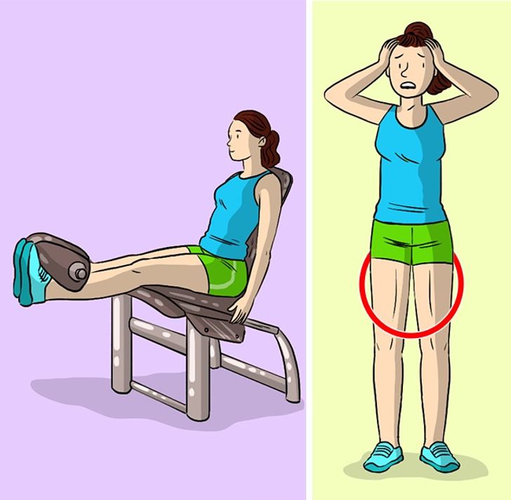 We mentioned above that squats with heavy weights can ruin your waist. But it’s not only about your waist — it’s also about your legs. First, intensive exercises can make your hips look less feminine and bulky. Second, heavy weights can ruin not only your figure, but can also do harm to your knees and lower back, as well.