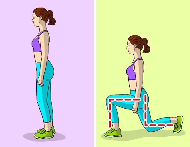 Lunges are a great exercise for your lower body. Follow this technique: take a short, but deep step forward.