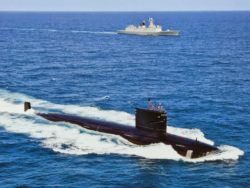 Type 093 submarines of China show the country’s developing underwater combat capability. These nuclear-powered assault submarines have a new tear-drop hull design best for high-speed operations and have sophisticated noise reducing technologies. While its weapons suite includes both anti-ship cruise missiles and heavy torpedoes, the submarine’s fighting system combines Chinese-developed sonar arrays with sophisticated signal processing capabilities. A major development in Chinese naval capability is the nuclear propulsion system of the vessel, which gives it great endurance and lets it function in far-off seas.