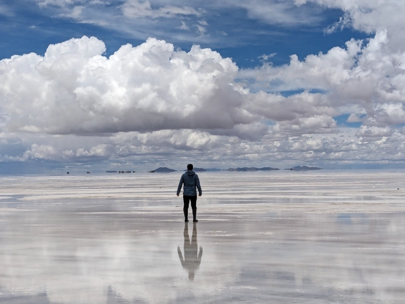 Usually from December to April, the most well-known phenomena of Salar de Uyuni is a thin layer of water turning the huge salt flat into the biggest natural mirror. By means of this remarkable metamorphosis, the horizon line is virtually eliminated and a limitless expanse of light and colour is produced, so reflecting the heavens. Usually only a few centimetres deep, the shallow water layer stays exceptionally calm because of the perfectly level surface of the salt flat, which produces very clear reflections. Professional photographers and painters from all around come especially to capture this occurrence, especially between sunrise and sunset when the sky bursts in bright colours. The high height of the salt flat—3,656 meters above sea level—where the thin air and clean atmosphere produce very brilliant reflections—helps to accentuate the mirror effect. With many visitors capturing bizarre photographs that play with perspective and scale against the unending reflecting surface, the phenomena also offers special chances for artistic photography.