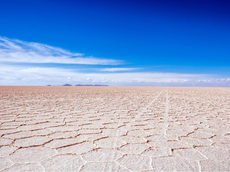The salt flat shows one of nature’s most amazing geometric beauty during the dry season: large fields of hexagonal salt tiles reaching to the horizon. Under the strong high-altitude sun, the mineral-rich water evaporates and a complicated process of crystallisation produces these natural formations. As the salt crystals expand and shrink with temperature, the hexagonal patterns—each with around one metre in diameter—form. Raised edges produced by this procedure surround every hexagon to produce a honeycomb-like structure covering the whole salt flat. Because they offer important new perspectives on crystallisation processes and natural geometry, scientists have investigated these formations in great detail The hexagons show the mathematical ideas underlying natural events by their impressively homogeneous size and form. These patterns produce faint shadows that produce a three-dimensional effect during midday, when the sun is exactly overhead, giving the salt flat the impression of an alien landscape. These salt crystals have amazing strength that lets cars pass across the surface without destroying the beautiful designs.