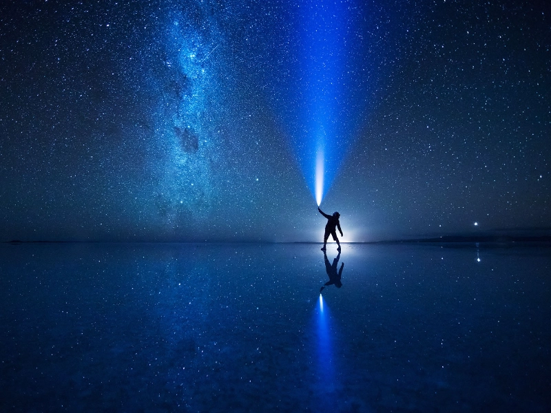 Salar de Uyuni’s great flatness and high elevation provide ideal circumstances for reflections and astronomical observations. Especially in the wet season, clear evenings become a giant mirror for celestial bodies, producing an immersive astronomical experience unlike anywhere else on Earth. Unprecedented view of stars, planets, and the Milky Way is made possible by the absence of light pollution and the thin, clean air at above 3,600 meters height. The ideal reflection doubles every celestial body seen in the night sky, therefore producing the appearance of being suspended in space. During new moon times, when the darkness is total and the reflections are most beautiful, astronomers and astrophotographers especially admire this site. The location of the salt flat close to the equator also offers unusual views of the constellations of the northern and southern hemispheres, which makes it a perfect place for night sky research. The natural ability of the salt flat to preserve a totally quiet water surface guarantees that the stellar reflections remain undisturbed, therefore augmenting the phenomena.