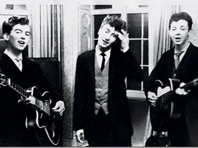 The photo of George Harrison, John Lennon, and Paul McCartney was taken at a wedding celebration in 1958.